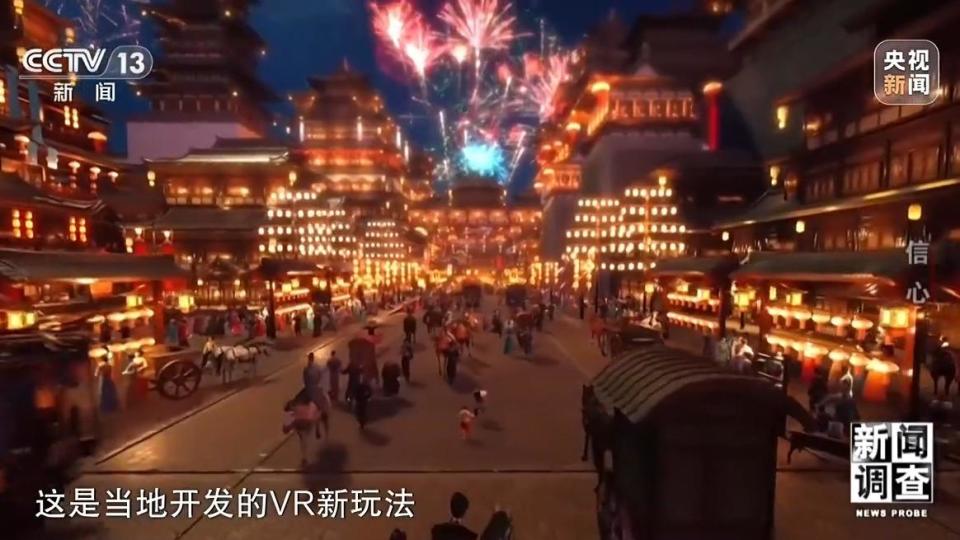在洛阳九洲池景区,许多游客身着汉服,打卡《风起洛阳》,这是当地开发的VR新玩法,用“换装+密室”的方式带领游客沉浸式感受盛世大唐。6 ?' c) a+ c: X- j8 r# Y