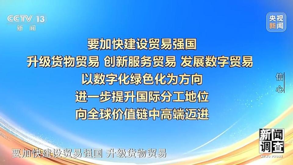 9 N6 u8 V) R5 P( A习近平总书记强调:“要加快建设贸易强国,升级货物贸易,创新服务贸易,发展数字贸易,以数字化绿色化为方向,进一步提升国际分工地位,向全球价值链中高端迈进。”