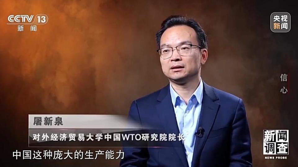 6 z* k+ Y$ M4 X- r4 a/ T) V# G对外经济贸易大学中国WTO研究院院长 屠新泉:从最高技术的科技产品,到最普通的消费品,我们几乎都能够生产,中国这种庞大的生产能力,为世界其实提供了非常好的选择,大幅度降低了这些商品的价格,也大幅度提高了各个国家消费者的福利。