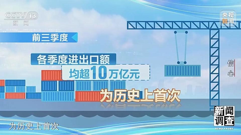 从生产到物流,从口岸到码头,临近岁末,外贸领域一片繁忙,各项数据纷纷出炉。2024年1月至11月,我国货物贸易进出口总值39.79万亿元,同比增长4.9%,其中出口增长6.7%,进口增长2.4%,总体实现平稳增长。前三季度各季度进出口额均超10万亿元,为历史上首次。