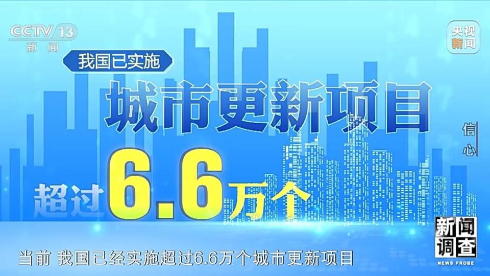 当前,我国已实施超过6.6万个城市更新项目;累计改造城镇老旧小区超过25万个,1亿多人从中受益;加装电梯12.5万部;改造提升水电气热等老化管线32.6万公里,相当于绕地球8圈多。建设口袋公园4万多个、城市绿道10万多公里。