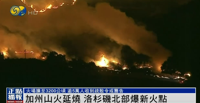 ( Q9 X& X4 w2 }5 z! |' H$ `加州山火延烧 洛杉矶北部爆新火点 * S+ j3 X. Q9 {8 n5 `* _