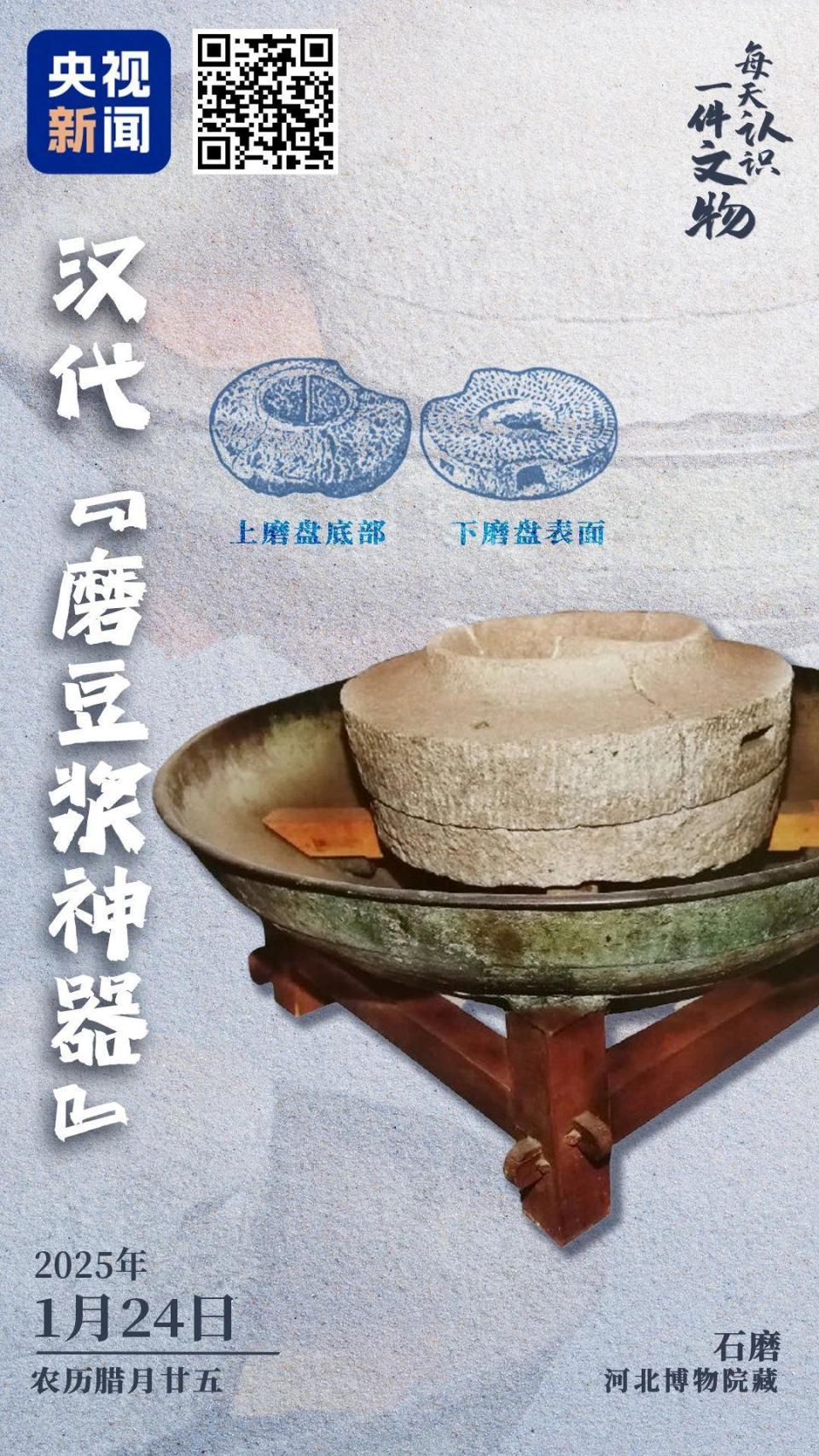 汉代⽯磨配铜漏⽃是古人的“磨豆浆神器”。石磨由两片浑厚的石盘组成,⼀上⼀下,犹如天地相接,承载着⽣命的轮回。⽯磨之下,⼀个⼤型的铜漏⽃静静地等待即将化为浆液的⽣命之粮。这种磨的设计在汉代首次出现,不仅是食物加工的工具,更是社会进步与技术革新的见证。