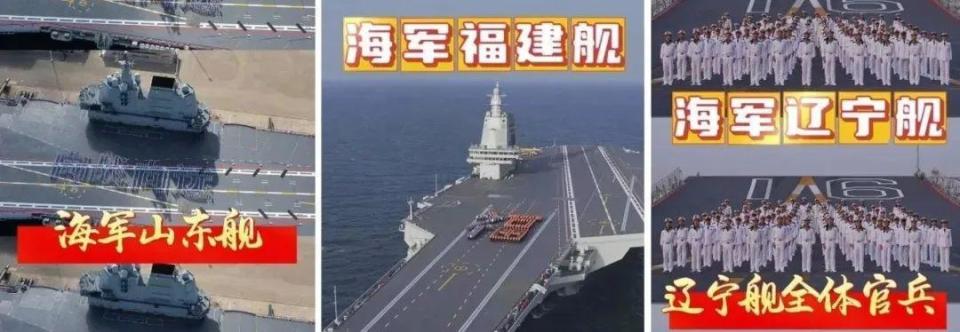 / n8 `( ~0 N7 t4 ?: t1、场面震撼!航母组团“硬核”拜年 春节将至,海军辽宁舰、山东舰、福建舰、四川舰等全体官兵,给全国人民送上新 年祝福。(新华社、人民海军)
