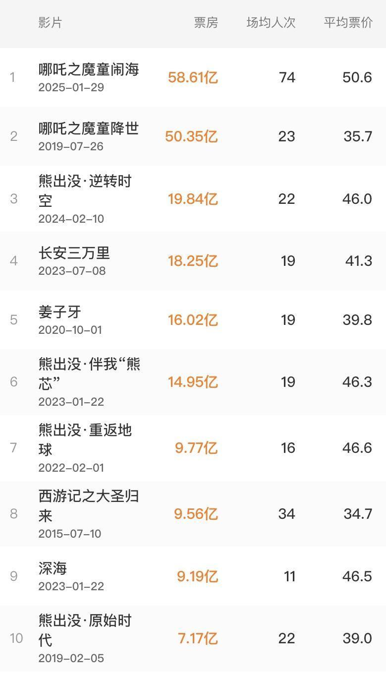 2019年,《哪吒之魔童降世》以50.35亿的票房成绩跻身中国影史票房第四;