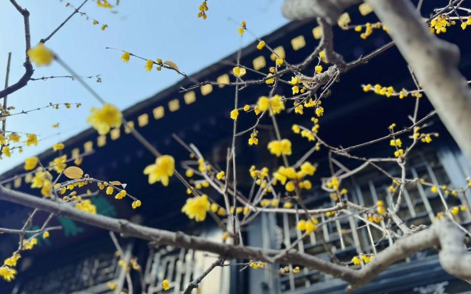本周,颐和园万寿山东麓乐农轩的蜡梅进入观赏期,鹅黄色的蜡梅花瓣娇嫩欲滴,淡淡的幽香为游客传递春天的气息。乐农轩以民间木屋的样式修建,区域内栽植十余株蜡梅,品种以“素心”蜡梅和“狗牙”蜡梅为主,经过颐和园多年的精心培育,姿态古雅,花量繁多,香气浓郁。目前,颐和园蜡梅开花率达到80%左右,花期将持续至3月初。据香山公园工作人员介绍,入冬后,前期气温较高,蜡梅开放时间为历年最早,自1月中下旬就开始零星开放,目前已进入盛花期,预计可持续至元宵节前后,为传统佳节带来一缕早春的幽香。) {" i) V+ M; ^ h