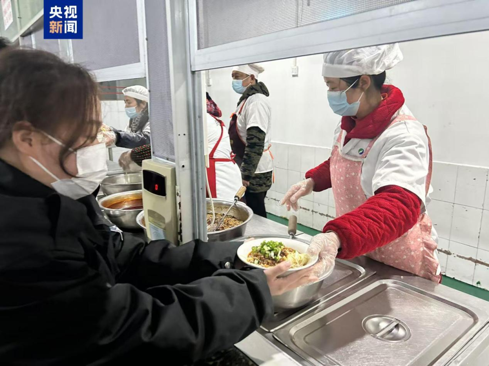 2月9日早上8点多,在四川宜宾筠连县沐爱镇筠连第二中学受灾群众安置点,工作人员为受灾群众准备的早餐已经摆上餐台,有包子、馒头、鸡蛋、面条等多种选择,受灾群众可根据需要任意搭配。