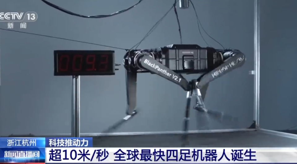 4、中国造出世界最快四足机器人 近日,浙江大学杭州国际科创中心推出了全球最快的四足机器人“黑豹”,在测试中,它可以稳定地跑出超过10米每秒的速度,打破了四足机器人的世界纪录。这个速度不光是人类的极限,对于机器人来说也是非常困难的,它对地面和电流的要求都非常高。(@央视新闻)9 t( @* x: A, P& v6 n