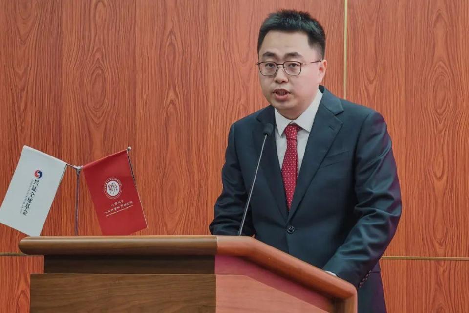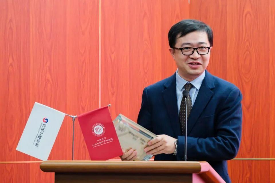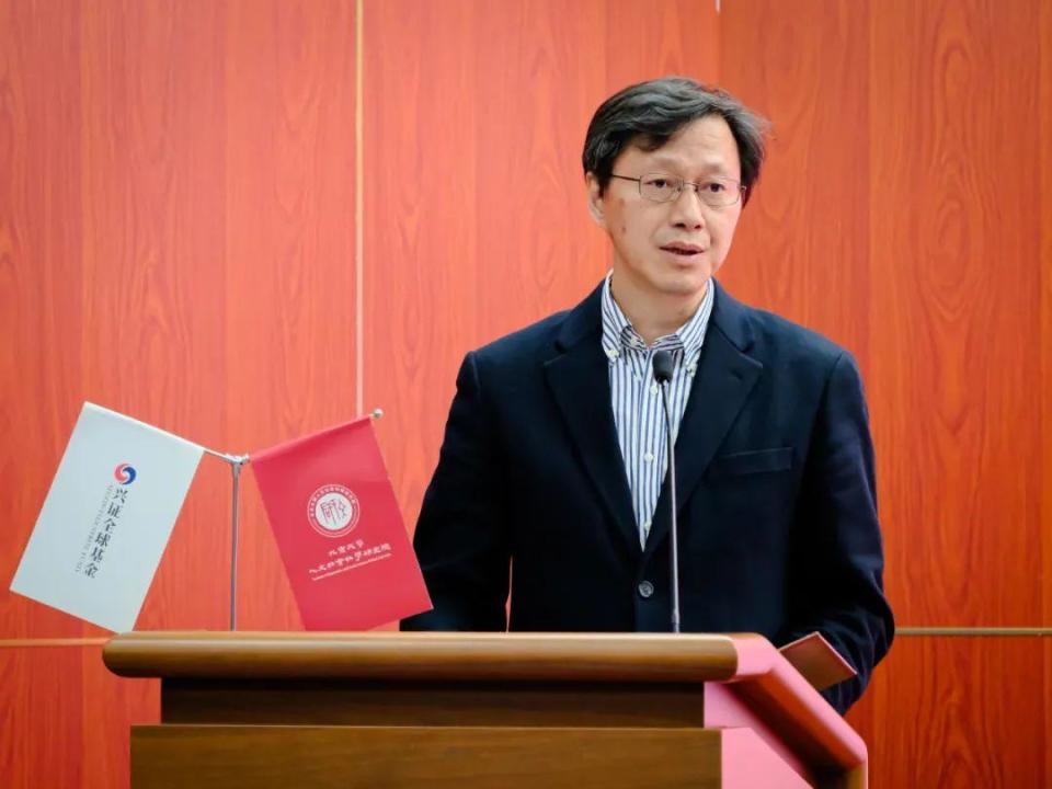 随后由北京大学党委常委、副校长任羽中老师致辞。任校长以王国维先生“一代有一代之文学”的观点为引,指出一个时代应该有一个时代的学问和文章,兴全青年著作奖的设立初衷就在于遴选出能够代表时代精神的著作引领文科学术发展。任校长特别提到了丁玲的“一本书主义”,强调著作、尤其是青年学者的首部专著既是其学术品位的集中体现,亦是其学术地位的奠基之作。兴全青年著作奖注重著作而非论文的评价导向有利于鼓励青年学者坚守学术深度,写出一本经得起时间考验的作品。( H& f1 H7 x+ A