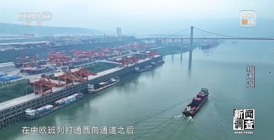 ( c& z6 m1 Z# v 被称为“山城”的重庆,虽坐拥长江黄金水道,但外贸物流曾长期受困于“向东绕海”的漫长周期,而空运又成本高昂,因此外向型经济发展受到制约。