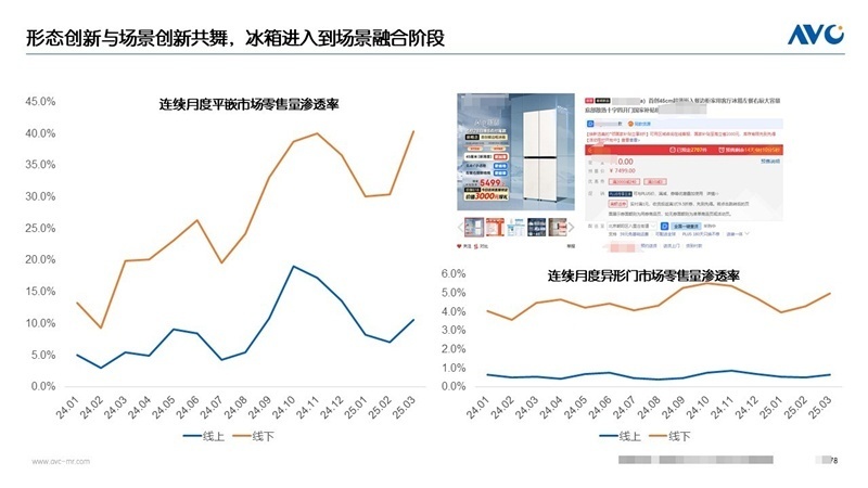 3 p* |# B# w* e! S% D# D' Q对于消费者来说,如果要是买高端冰箱或者大容量冰箱,最好在线下购买。徐学录解释道,在线上购买的冰箱一般是常规型、通用型的冰箱,而在线下,万元以上的冰箱占据80%-90%的市场份额。此外,面板和价格之间存在一定联系,裴东敏介绍了这种充分不必要的关系:中低端市场的产品,基本上都是金属版,高端市场的产品,玻璃板和金属板都有。