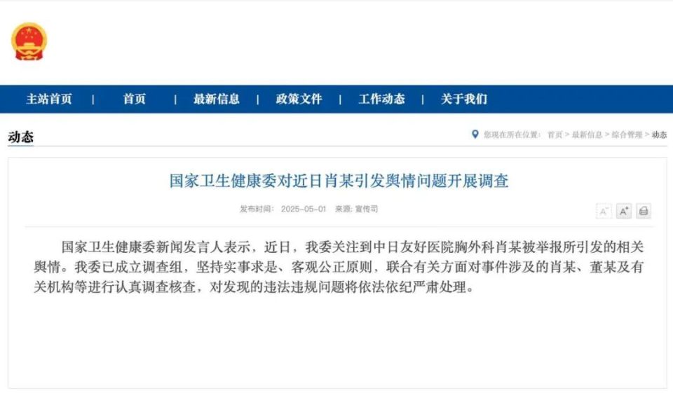 1、国家卫健委对肖某董某及有关机构调查核查 国家卫生健康委新闻发言人表示,近日,我委关注到中日友好医院胸外科肖某被举报所引发的相关舆情。我委已成立调查组,坚持实事求是、客观公正原则,联合有关方面对事件涉及的肖某、董某及有关机构等进行认真调查核查,对发现的违法违规问题将依法依纪严肃处理。(@人民日报)$ F x# J2 D5 f! [ V+ h3 ^' F